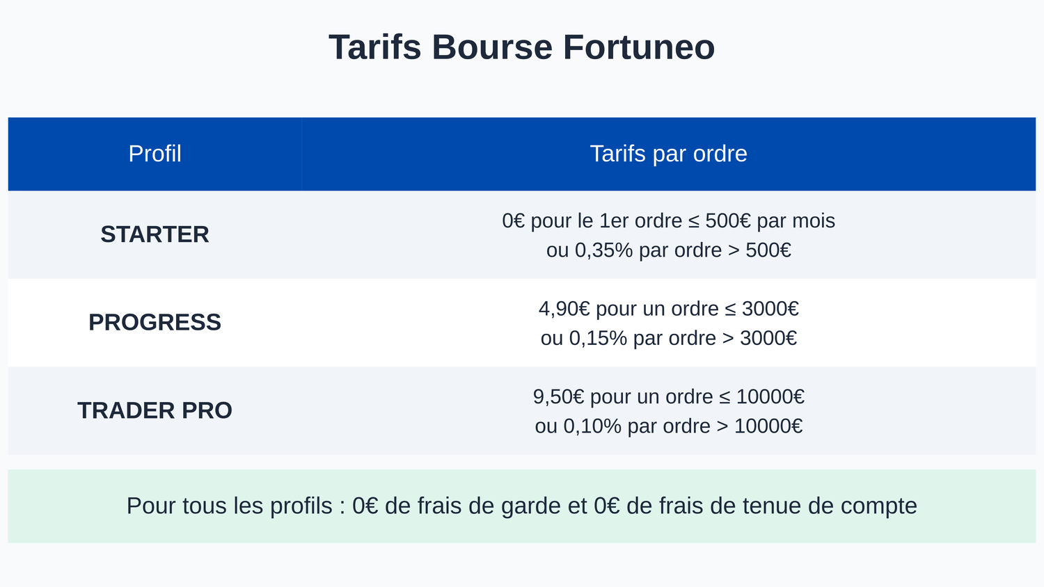 Passons maintenant au CTO, au PEA et PEA-PME, chez Fortuneo c'est du LOURD ! Plusieurs tarifs sont disponibles en fonction de 3 profils d’investisseurs.