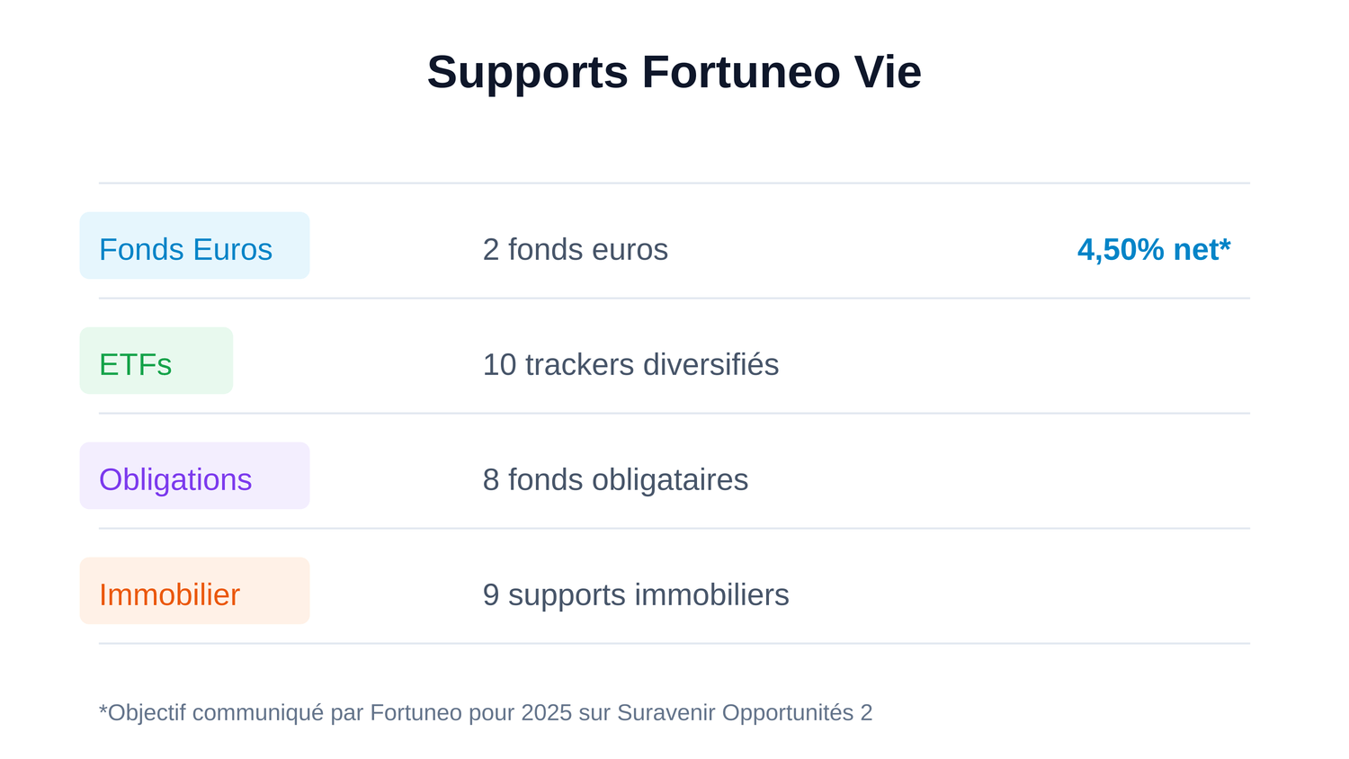 Attention par rapport à l’objectif NON GARANTI de 4,50% de rendement net communiqué par Fortuneo, il semble bien surestimé par rapport aux performances passées du fonds euros qui affiche en 2023 un rendement net de 2,50%.