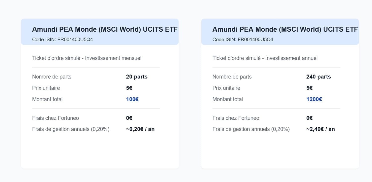 Et sur un PEA chez Fortuneo, votre ordre sera gratuit si vous utilisez l’offre Starter et que vous restez sous les 500 €. Pas de frais d’achat, pas de frais cachés. Résultat : vous optimisez chaque euro investi.