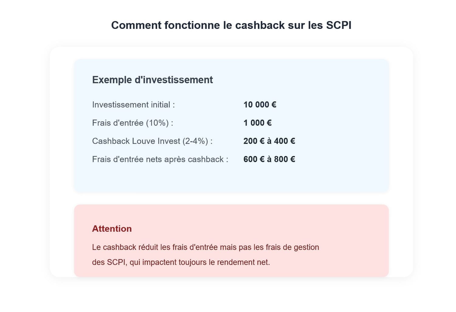 Attention cependant : même si le cashback réduit les frais d’entrée, il ne change pas les frais de gestion des SCPI qui, eux, restent bien présents et peuvent impacter le rendement net.
